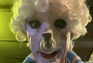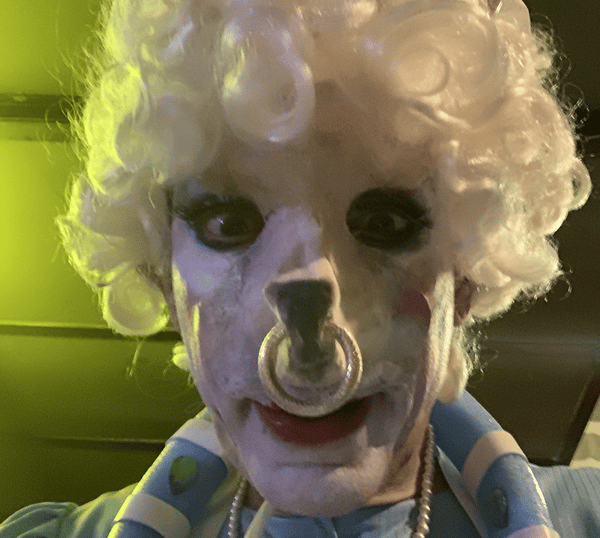 Le maquillage fait advenir le jeu. Comme le tableau apparaît sous le pinceau, le personnage advient à force de glacis superposés. C’est même une erreur fatale et une impasse de vouloir d’abord un personnage et la meilleure façon de ne pas le faire apparaître. Ce que je crée dépend de l’humeur, de l’ambiance du spectacle, de ce que jouent les autres, un peu comme si je manipulais de la pâte à modeler en direct. C’est d’ailleurs pour cela que j’apporte toujours plus de matériel que ce dont j’ai besoin.
